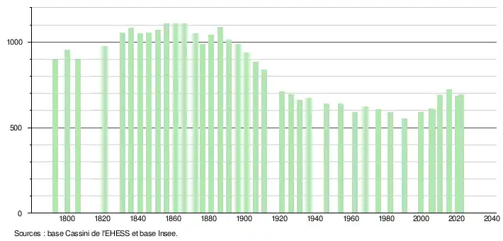 - ↑ Fiches Insee - Populations de référence de la commune pour les années 2006, 2007, 2008, 2009, 2010, 2011, 2012, 2013, 2014, 2015, 2016, 2017, 2018, 2019, 2020, 2021 et 2022.