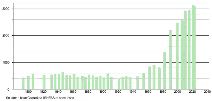 - ↑ Fiches Insee - Populations de référence de la commune pour les années 2006, 2007, 2008, 2009, 2010, 2011, 2012, 2013, 2014, 2015, 2016, 2017, 2018, 2019, 2020, 2021 et 2022.