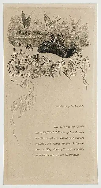 - ↑ Rédaction, « L'exposition de la Chrysalide », Journal de Bruxelles, no 134, , p. 2 (lire en ligne, consulté le ).