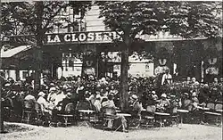 La Closerie, dont la vie nocturne est passée dans la légende, devient un des hauts lieux de l'intelligentsia américaine : Ernest Hemingway, Francis Scott Fitzgerald, Henry Miller… font la réputation de Montparnasse. C'est à la terrasse de La Closerie que Fitzgerald fait lire le manuscrit de Gatsby le Magnifique à Hemingway.