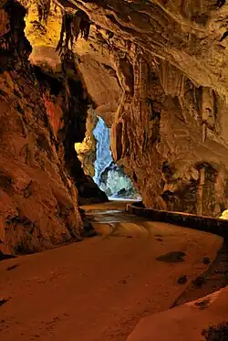La grotte est parfaitement éclairée pour faciliter le passage des passants et mettre en valeur les formations géologiques.
