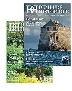 - Les revues La Demeure historique (ISSN 0998-5956) : créée en 1966, la revue a positionné sa ligne éditoriale sur l’accompagnement opérationnel des propriétaires-gestionnaires de monuments et jardins historiques. Ce trimestriel (mars, juin, septembre et décembre) de 80 pages propose un autre regard sur le patrimoine, le regard de celles et de ceux qui le font vivre tout en apportant conseils techniques et partage d'expériences[12].