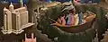 À droite, le paysage naturel est également inspiré de celui de la Toscane, des terres qui sont elles aussi source de richesse pour Florence.