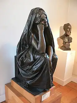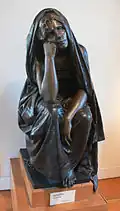 La sculpture représente une femme assise enveloppée dans un voile. Elle a le regard vide, la tête penchée reposant sur son point et le coude sur sa cuisse. Son autre bras pend mollement entre ses genoux. Elle a les pieds nus. Quelques fleurs sont posées à côté.