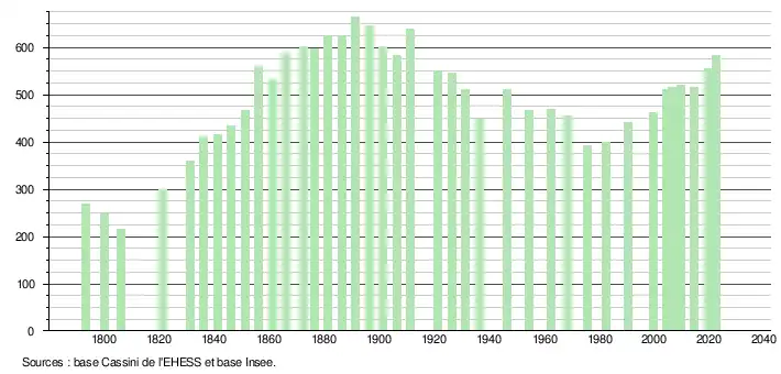 - ↑ Fiches Insee - Populations de référence de la commune pour les années 2006, 2007, 2008, 2009, 2010, 2011, 2012, 2013, 2014, 2015, 2016, 2017, 2018, 2019, 2020, 2021 et 2022.