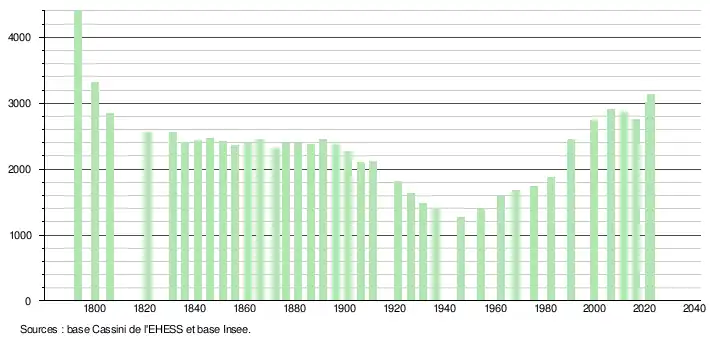 - ↑ Fiches Insee - Populations de référence de la commune pour les années 2006, 2007, 2008, 2009, 2010, 2011, 2012, 2013, 2014, 2015, 2016, 2017, 2018, 2019, 2020, 2021 et 2022.