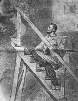 En amont à la réalisation de son œuvre gigantesque, il utilise des techniques préparatoires académiques, en exécutant des esquisses successives qui diffèrent légèrement les unes des autres en taille et en couleur. Toutes ces esquisses ont une palette assez restreinte, allant du bleu outremer (cette version a été perdue) au vert, en passant par d'autres versions dominées par un orange vif. L'éboulement de pierres a également disparu de la version finale. En comparaison avec les études, le tableau final a gagné en dynamisme et présente un contraste plus fort (entre les tons noirs et dorés) que les versions précédentes, tandis que la tension entre lumière et ombre est plus polarisée.