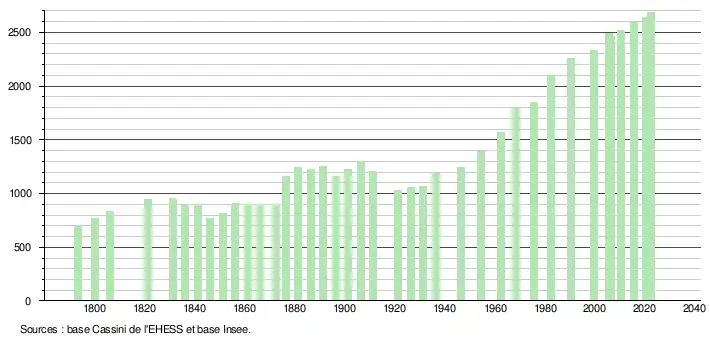- ↑ Fiches Insee - Populations de référence de la commune pour les années 2006, 2007, 2008, 2009, 2010, 2011, 2012, 2013, 2014, 2015, 2016, 2017, 2018, 2019, 2020, 2021 et 2022.