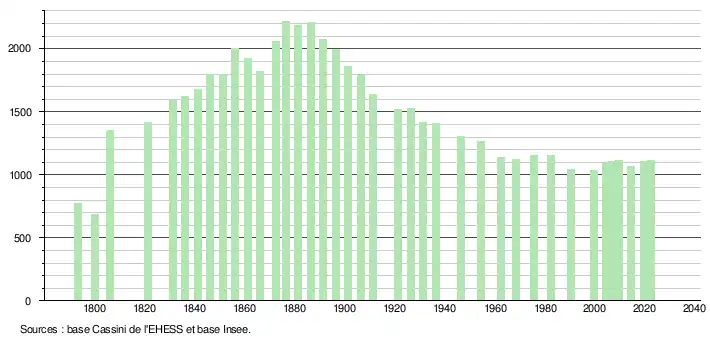 - ↑ Fiches Insee - Populations de référence de la commune pour les années 2006, 2007, 2008, 2009, 2010, 2011, 2012, 2013, 2014, 2015, 2016, 2017, 2018, 2019, 2020, 2021 et 2022.