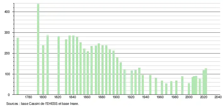 - ↑ Christiane Vidal, « Chronologie et rythmes du dépeuplement dans le département des Alpes-de-Haute-Provence depuis le début du XIXe siècle. », Provence historique, tome 21, no 85, 1971, p. 287.