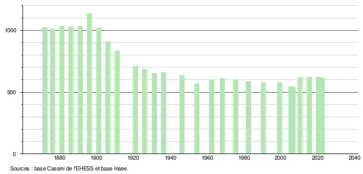 - ↑ Fiches Insee - Populations de référence de la commune pour les années 2006, 2007, 2008, 2009, 2010, 2011, 2012, 2013, 2014, 2015, 2016, 2017, 2018, 2019, 2020, 2021 et 2022.