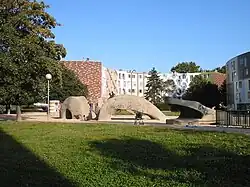 Les Solstices est un ensemble de deux bâtiments courbes qui flanquent une place ovale herbeuse où se dresse un obélisque et où deux longs bancs courbes dessinent le tracé de la course du soleil aux solstices[14].