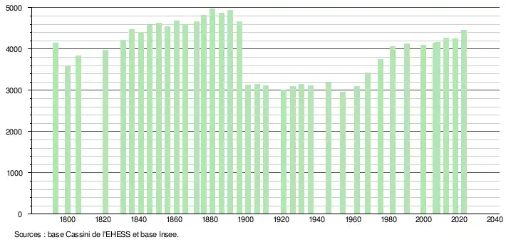 - ↑ Fiches Insee - Populations de référence de la commune pour les années 2006, 2007, 2008, 2009, 2010, 2011, 2012, 2013, 2014, 2015, 2016, 2017, 2018, 2019, 2020, 2021 et 2022.
