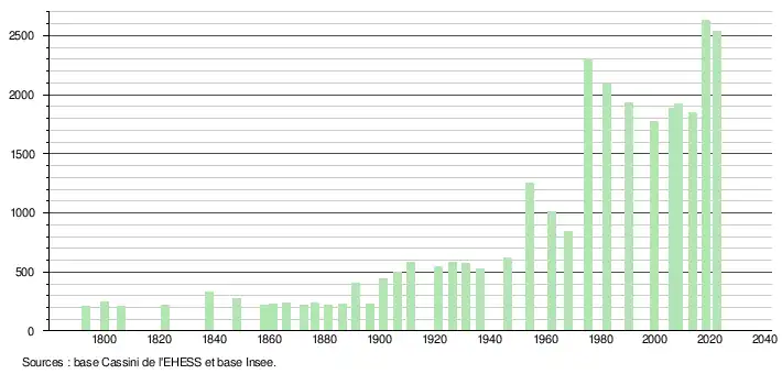 - ↑ Fiches Insee - Populations de référence de la commune pour les années 2006, 2007, 2008, 2009, 2010, 2011, 2012, 2013, 2014, 2015, 2016, 2017, 2018, 2019, 2020, 2021 et 2022.