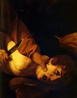 Michelangelo Merisi da Caravaggio, en français Caravage ou le Caravage, est un peintre né le à Milan et mort le à Porto Ercole. Le Sacrifice d'Isaac (en italien Sacrificio di Isacco) peint vers 1597 et conservé à la Galerie des Offices de Florence (Italie), est un bon exemple de la technique que Rembrandt utilise dans ses œuvres: