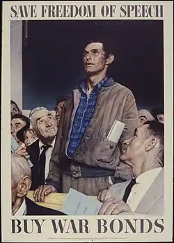 Les personnes qui achètent des obligations de guerre américaines au cours de la Seconde Guerre mondiale reçoivent une série de reproductions en couleurs des Quatre Libertés dotées d'une jaquette commémorative montrant cette œuvre[17].