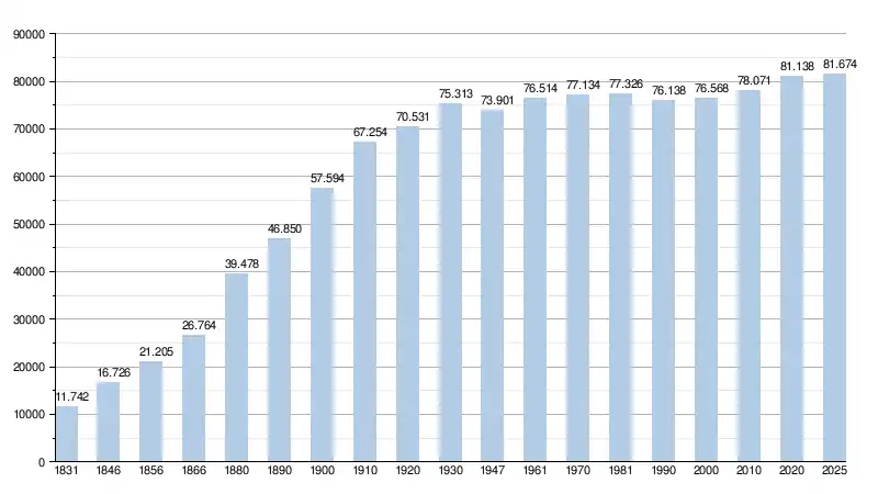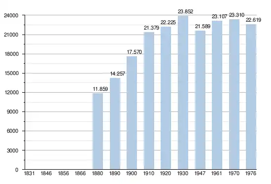 Source: DGS , de 1831 à 1981=recensements population; à partir de 1990 = nombre d'habitants chaque 1er janvier[22]