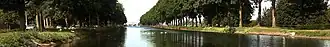 Le canal du Centre était conçu pour des péniches de 300 à 350 tonnes. Au lendemain de la Seconde Guerre mondiale se posait le problème de rassembler en un ensemble cohérent le réseau des voies navigables. Un plan d'aménagement fut mis au point, qui prévoyait notamment de porter au gabarit de 1 350 t le canal du Centre, maillon de la transversale qui relie Dunkerque à Liège en passant par Valenciennes, Mons, Charleroi et Namur. La loi du déclarait d'intérêt national et urgent l'exécution des travaux de modernisation ou de la construction d'un ensemble de voies navigables à 1 350 t dont le canal Nimy-Blaton-Péronnes, le canal de Charleroi-Bruxelles et le canal du Centre[121]. Mise en chantier au mois de , la section de Nimy-Obourg, longue de 4,5 km, fut achevée en . Elle comprenait l'écluse de Obourg à Wartons. Les travaux de la section Obourg-Havré furent exécutés entre et , y compris l'écluse d'Havré mise en service le [122].