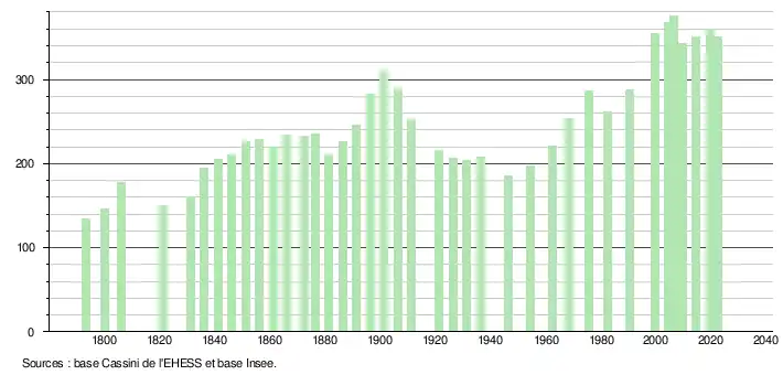 - ↑ Fiches Insee - Populations de référence de la commune pour les années 2006, 2007, 2008, 2009, 2010, 2011, 2012, 2013, 2014, 2015, 2016, 2017, 2018, 2019, 2020, 2021 et 2022.