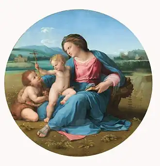 - (it) Cet article est partiellement ou en totalité issu de l’article de Wikipédia en italien intitulé « Madonna d'Alba » (voir la liste des auteurs).
