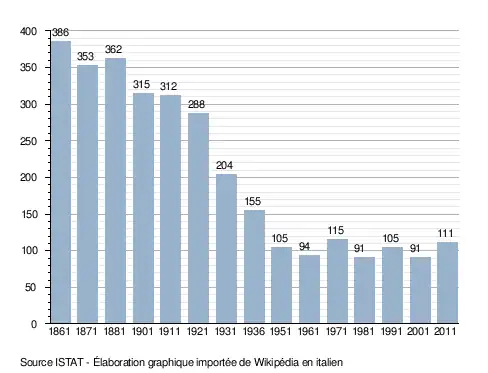 - ↑ (it) Popolazione residente e bilancio demografico sur le site de l'ISTAT.