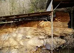 - un ensemble supérieur, sablo-argileux, d'une épaisseur moyenne de 2 m, aujourd'hui absent de la coupe témoin. Le niveau archéologique ayant conduit à la définition du Micoquien pourrait se trouver à la base de cet ensemble, mais il n'a jamais été retrouvé dans les fouilles récentes[9].