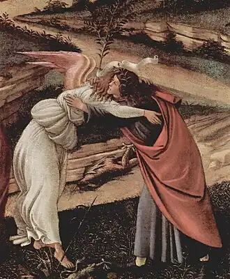 - ↑ John Ruskin a contribué à donner à la peinture son nom après avoir vu le tableau à Londres il a mentionné « Le symbolisme mystique » de Botticelli.