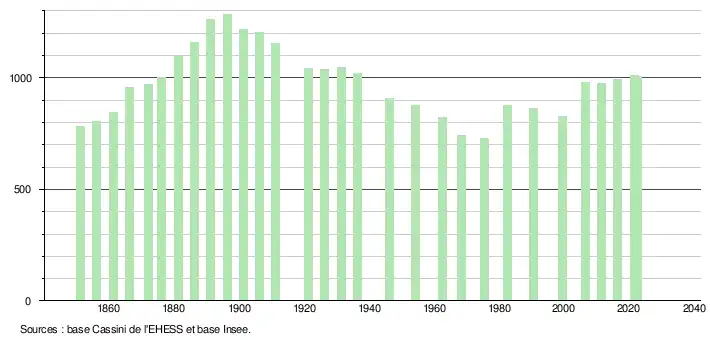 - ↑ Fiches Insee - Populations de référence de la commune pour les années 2006, 2007, 2008, 2009, 2010, 2011, 2012, 2013, 2014, 2015, 2016, 2017, 2018, 2019, 2020, 2021 et 2022.