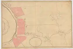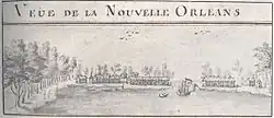 Les plans de La Nouvelle-Orléans furent dessinés par Adrien de Pauger et Le Blond de la Tour sur le modèle traditionnel des villes nouvelles, c'est-à-dire un damier symétrique, dont la taille maximale devait être de 88 hectares divisés en 66 îlots[11], avec une place où se trouvaient l’église (la future cathédrale Saint-Louis), la maison du gouverneur et des casernes. Sur les quais furent aménagés des magasins, un hôpital et le couvent des Ursulines. C'est notamment Adrien de Pauger qui dessina les plans du Vieux Carré avec ses rues à angle droit. La construction s'avéra très difficile à cause du climat, mais aussi des forêts denses qui occupaient le site : l'ouragan de 1722 causa d'énormes dommages[12]. Le manque de main-d'œuvre, les épidémies et les moustiques ralentirent également les travaux. Le creusement du chenal démarra en 1723.