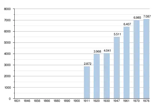 - Sources : INS, Rem. : 1831 jusqu'en 1970 = recensements, 1976 = nombre d'habitants au 31 décembre[12].