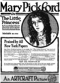 - : La Petite Princesse, film muet américain avec Mary Pickford dans le rôle de Sara et Katherine Griffith dans celui de Miss Minchin.