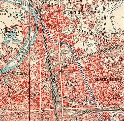 - au sud jusqu'à Paris (portes de la Chapelle et d'Aubervilliers) ;