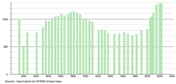 - ↑ Fiches Insee - Populations de référence de la commune pour les années 2006, 2007, 2008, 2009, 2010, 2011, 2012, 2013, 2014, 2015, 2016, 2017, 2018, 2019, 2020, 2021 et 2022.