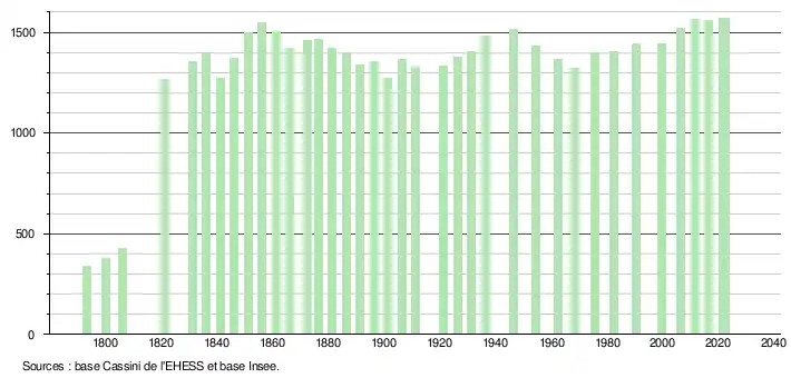 - ↑ Fiches Insee - Populations de référence de la commune pour les années 2006, 2007, 2008, 2009, 2010, 2011, 2012, 2013, 2014, 2015, 2016, 2017, 2018, 2019, 2020, 2021 et 2022.