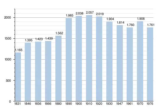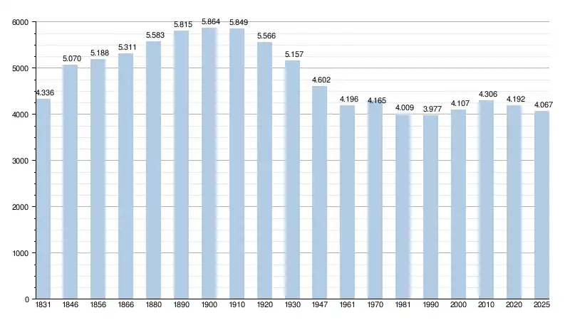 Les chiffres des années 1831 à 1970 tiennent compte des chiffres des anciennes communes fusionnées.