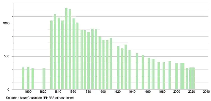 - ↑ Fiches Insee - Populations de référence de la commune pour les années 2006, 2007, 2008, 2009, 2010, 2011, 2012, 2013, 2014, 2015, 2016, 2017, 2018, 2019, 2020, 2021 et 2022.