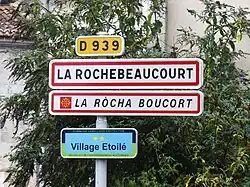 - ↑ Le nom occitan des communes du Périgord - La Ròcha Beucort e Argentina sur le site du Conseil général de la Dordogne, consulté le .