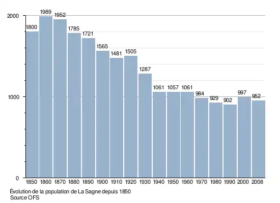 Le graphique suivant résume l'évolution de la population de La Sagne entre 1850 et 2008[8] :