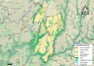 L'occupation des sols de la commune, telle qu'elle ressort de la base de données européenne d’occupation biophysique des sols Corine Land Cover (CLC), est marquée par l'importance des territoires agricoles (66,2 % en 2018), une proportion sensiblement équivalente à celle de 1990 (66,3 %). La répartition détaillée en 2018 est la suivante : terres arables (49,6 %), forêts (33,1 %), zones agricoles hétérogènes (12,3 %), prairies (4,3 %), zones urbanisées (0,7 %)[30].