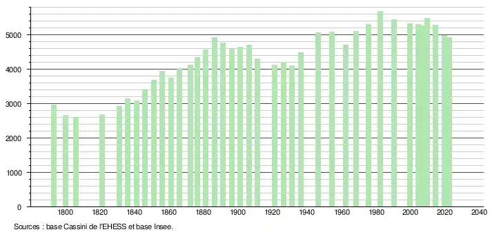 - ↑ Fiches Insee - Populations de référence de la commune pour les années 2006, 2007, 2008, 2009, 2010, 2011, 2012, 2013, 2014, 2015, 2016, 2017, 2018, 2019, 2020, 2021 et 2022.