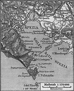 En 1869 est inauguré l'arsenal militaire maritime. Le port de La Spezia fut au cours de la Seconde Guerre mondiale la grande base navale de la péninsule, avec Tarente. Partant de La Spezia, à l'ouest, la Ligne gothique — dernière grande position défensive allemande en Italie — d'une importance vitale pour la Wehrmacht, s'étendait sur la bordure nord des Apennins jusqu'à Pesaro sur l'Adriatique. L'arsenal fut plusieurs fois bombardé par des avions.