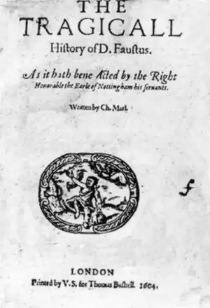 The Tragical History of Doctor Faustus, page de titre de l'édition originale de 1604 publiée à Londres par Thomas Bushell.