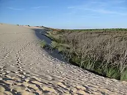 Un peu en marge de cette plage, entre dunes et forêt, s'étend une petite lagune heureusement préservée, le marais du Galon d'or. Cet espace palustre méconnu, d'une grande diversité sur les plans faunistiques et floristiques, est protégé dans le cadre du réseau Natura 2000. Du fait de la présence de sables mouvants (signalés) et en raison de la fragilité de cet espace naturel, il est impératif de respecter les sentiers aménagés.