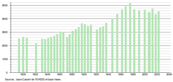 - ↑ Fiches Insee - Populations de référence de la commune pour les années 2006, 2007, 2008, 2009, 2010, 2011, 2012, 2013, 2014, 2015, 2016, 2017, 2018, 2019, 2020, 2021 et 2022.