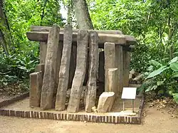 | Monuments 2 et 3 dans le Complexe A. | Monument 4. | Stèle 1. | Reproduction de la Stèle 5. | Reproduction d'une stèle dans le Complexe C. | Reproduction du Monument 25-26. | Monument 13. | |