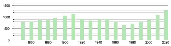 - ↑ De 1850 à 2000, population cumulée des communes ayant fusionné en 2004.