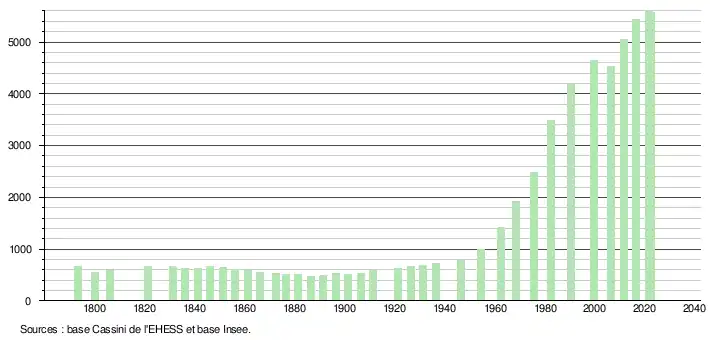 - ↑ Fiches Insee - Populations de référence de la commune pour les années 2006, 2007, 2008, 2009, 2010, 2011, 2012, 2013, 2014, 2015, 2016, 2017, 2018, 2019, 2020, 2021 et 2022.