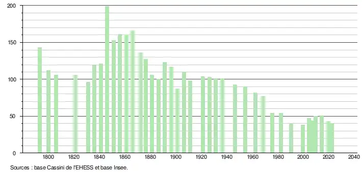 - ↑ Population municipale de référence en vigueur au 1er janvier 2025, millésimée 2022, définie dans les limites territoriales en vigueur au 1er janvier 2024, date de référence statistique : 1er janvier 2022.