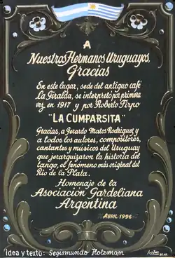 Plaque commémorative sur le mur de l'ex-café La Giralda, de Montevideo en Uruguay