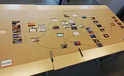 Cette première phase consiste à construire collectivement la fresque en reliant les 42 cartes selon des liens de cause et conséquences[7] tels que présentés par le GIEC dans ses différents rapports[2],[3],[8].
